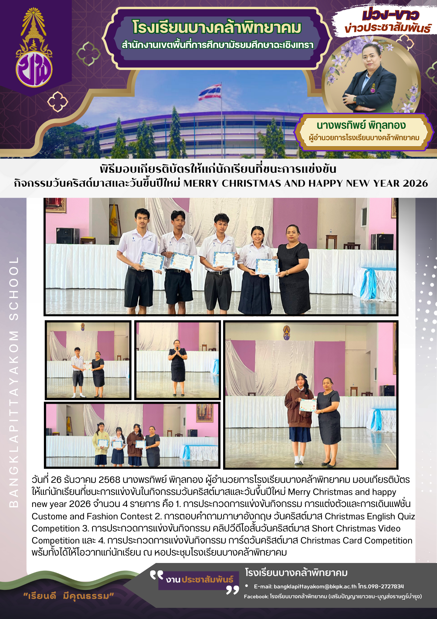 พิธีมอบเกียรติบัตรให้แก่นักเรียนที่ชนะการแข่งขัน กิจกรรมวันคริสต์มาสและวันขึ้นปีใหม่ Merry Christmas and happy new year 2026